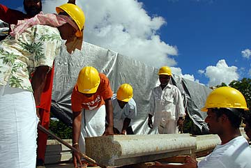 The big news for the day was yet another successful stone lift at Iraivan. Sun shade and some other roof stones were hoisted.