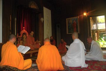 That done, each comes forward and prostrates to Bodhinatha to supplicate his blessings for the next two years in the monastery. Bodhinatha signs the vow books.