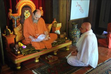 Bodhinatha takes his spiritual seat in the Guru Peedam to oversee the formal vow-taking.