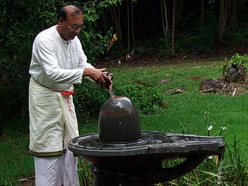 The Wigneswaran's worshipping Lord Siva at the Narmada Lingam.