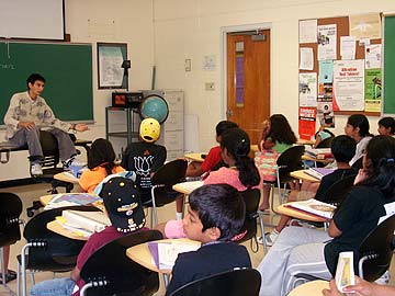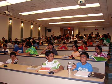 Kartikeya Katir giving first class at the Sri Venkateshwara Youth Camp. He has attended for 6 years, and this year is a counselor as well. In the class he related the story of the Hindu History Lesson at the California Department of Education, and called students to action to talk with their teachers and spread the good news.