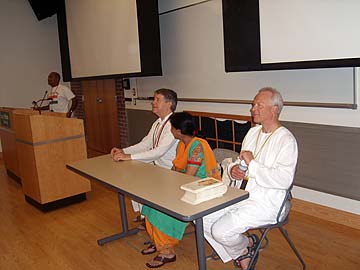 The lecture hall. Copies of "What is Hinduism" were given to all students.
