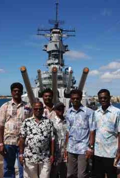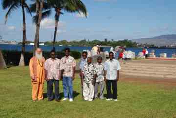 So to honor their dedication, Palaniswami and Yoginathaswami took them to Honolulu for an entire day, 5am to 7pm. After the 22-minute flight to Hawaii's capital city, we went to Pearl Harbor, and took a bus to one of the great memorials in the State.