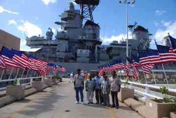 This is Pearl Harbor, where the Japanese attacked the US on December 7 of 1945. We will be going aboard the gray battleship you see on the far left of this photo.