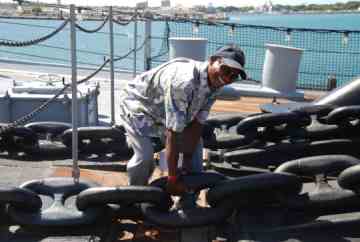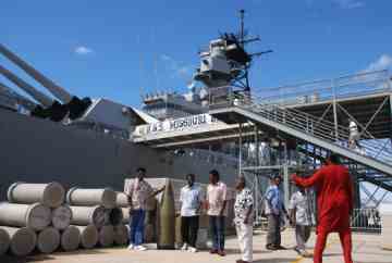 Those 16-inch guns are among the largest of their kind in the world. The silpis always wanted to board a ship. This was their first time.