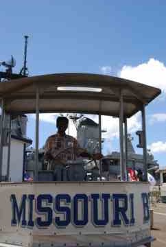 It's the USS Missouri, and it holds some history. It was in the first Gulf War, Desert Storm, and on September 2, 1945 it was in Tokyo Harbor. On board were the generals of the armies of many nations, and the representatives of the Empire of Japan. The eight of us stood on the site where the treaty to end World War II was signed.
