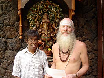 Dr. Parasivam with Paramacharya Ceyonswami following the morning puja outside the Kadavul Siva Temple. Dr. Parasivam is originally from Jaffna, Sri Lanka. He then moved to the USA in 1989 where he taught Environmental Science in Atlanta, GA. He more recently moved to Oahu where he continues to teach to the present time.