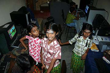 "Yesterday Helen Downham and I spent the morning shopping for sporting goods that Helen thought the girls of Yogaswami Hindu Girls Home could use. We bought two good quality volleyballs (they had been using some heavy duty ball unsuited for girls), tennis balls, a set of four badminton rackets with net and shuttlecocks, as well as some puzzles and English books, and drove to Sittandy where we presented the children with the sporting items."
