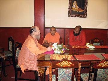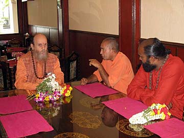 Meantime, Satguru and Yoginathaswami meet Sivaprabhananda Swamiji - resident Sannyasin Temple Of Fine Arts (JB). He was initiated by Shantanand Saraswathi Swamiji, founder of the society.