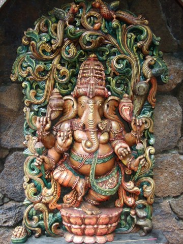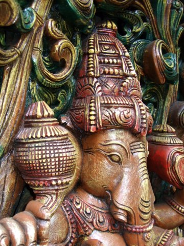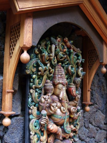 Outside resides a precious carving of our mighty Lord Ganesha, to greet and bless all who venture nigh.