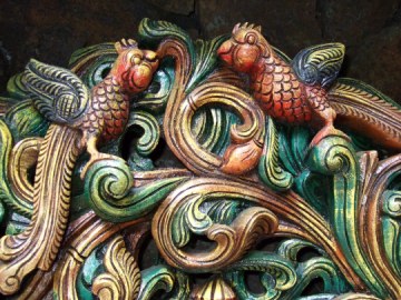 This marvelous sculpture in wood was designed by the monks and carved in North India.
