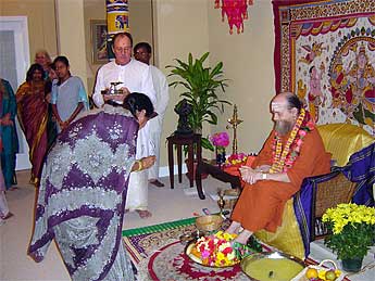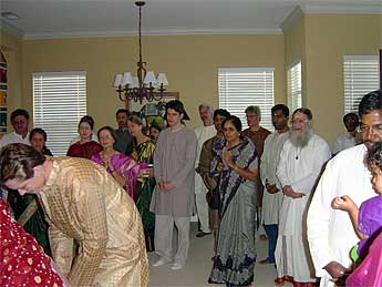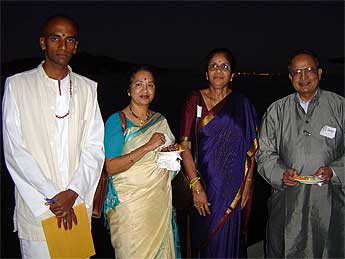 Sadhaka Dandapani and Sarojini Rao, with the Satyas from San Jose. The Rao's found out that they and the Satyas have a common friend in San Jose. Small world again!