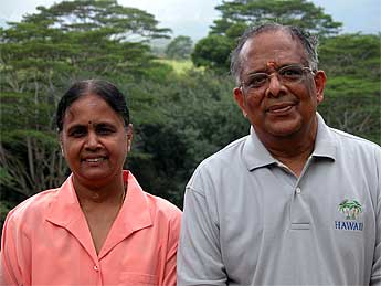 Sevugan and Meena Chetty visited us this morning on the recommendation of friends who had already visited. They live in New York near Albany. Sevugan's original home in India is only ten miles from Karaikkudi, the area where are Iraivan Temple silpi stone craftsmen come from. He also knows Sri Sri Tiruchy Swamigal of Bangalore who gives blessings to our temple carving site there.