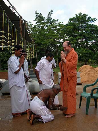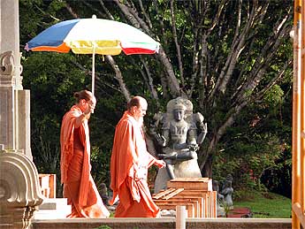 Gary Shimabukuro, president of Laulima Pacific, Inc., a nonprofit organization dedicated to combatting drug use, visited the Aadheenam today. He is an international drug treatment and prevention consultant who gives talks to schools, businesses and government agencies. He toured the grounds with his wife and Aloma Wehi of New Zealand, and spoke with the monks about the monastery's modest efforts to help the county with the problem of use of illegal drugs. Gary said that children as young as 9 years old were using hard drugs like crystal methamphetamine, and that a substantial portion of the abuse was related to unstable family situations.