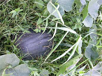 Of the many kinds of squash and pumpkins available, the most successful has been the "Mauritius Pumpkin"... seeds were from Mauritius and they produce a giant pumpkin... the key feature of this variety is the tough shell that forms when they are very young, thus preventing the fruit flies from stinging the fruit, which is what happens to most other squashes we try...