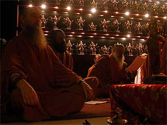 Bodhinatha read aloud his Sun One discourse. This is another in the series he is prepared for Mauritius. We got him a new microphone... barely visible from a distance and it works very well.