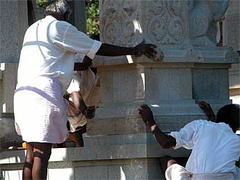 "Siva's followers all believe that religion is the harmonious working together of the three worlds and that this harmony can be created through temple worship, wherein the beings of all three worlds can communicate."
