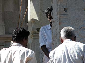 The older couple in this photo live in Honolulu. They are associated with an Indian art gallery there and had heard about Iraivan Temple and wanted to see it in person. They were very impressed with the magnitude of the temple project.