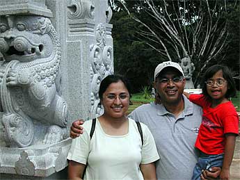 This is Iqbal and Manjit Dhindsa family visiting from Phoenix area in Arizona. It is their daughter's sixth birthday today...happy birthday! They came to our monastery a few times in the last several days waiting for the right weather and timing to see Iraivan Temple, and it finally happened. They were appreciative of how traditionally the temple is being created.
