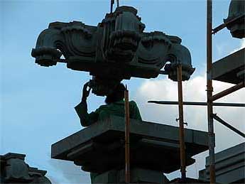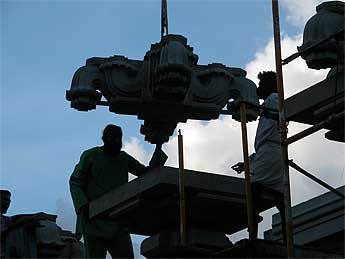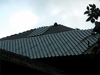 The new roof on Kauai Aadheenam main building is going up fast. It is a lovely green color...
