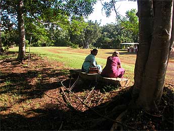 Here we are out at the temple site under the Rudraksha trees on the west side of the temple.