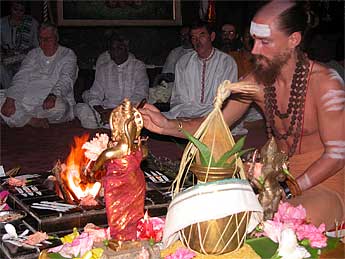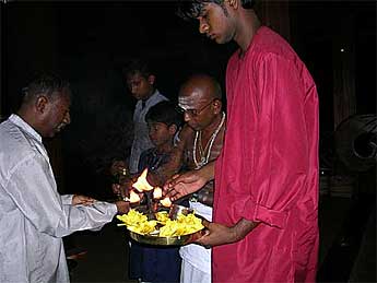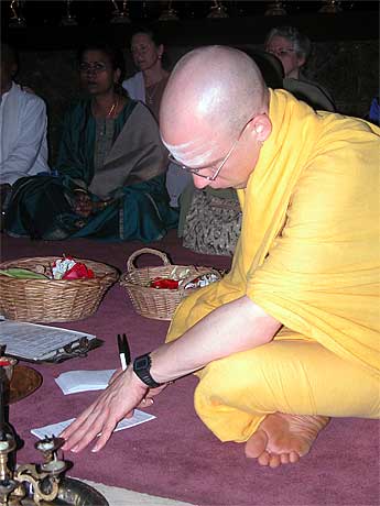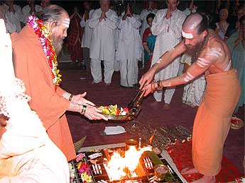 Brahmachari Vel Mahalingum assisted by Sivarathna Manick performed the ceremony while everyone silently enjoyed the darshan of the Guru.