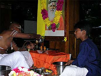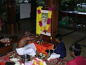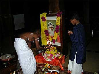 It's a wonderful moment for the shishyas to worship together with their thoughts on Gurudeva.