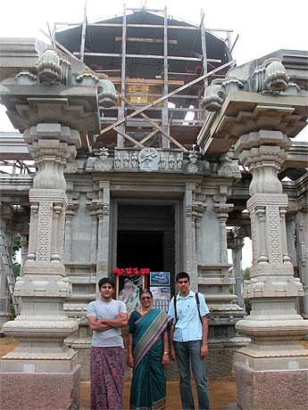 Amma is visiting her sons from Chennai and was most impressed to see a traditional temple like she sees in her homeland. With bhadra pillars installed now in front of the sanctum, the temple looks awesome.