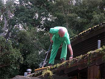 The Siddhidata Kulam doing one of the regular maintenance tasks: cleaning the roofs. With our weather in Hawaii, and all the falling organic matter, things grow rapidly on the roof. Gurudeva once said, "You will need to get a deforestation permit first before you clean the roof." 😉