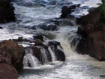 This is the small falls of the Wailua Ganga going into the pond just below the monastery.
