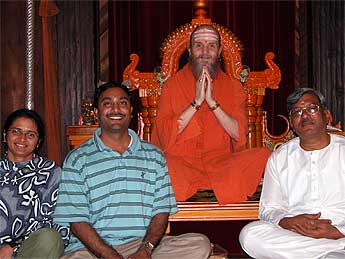 Prabhu and Radhika Ambatipudi (left) returned today with their Guru, Sri. N.V. Raghuramji, to join us for the early Sun One homa and later to have darshan with Bodhinatha
