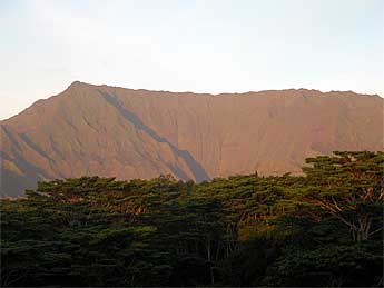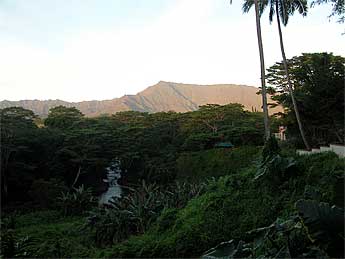 We skipped photos of the homa today which you have seen many times in favor of a beautiful picture from our doorstep. We reveled in the dry night and perfectly clear morning when Mount Waialeale revealed itself in all its' majesty...