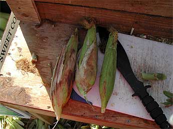 Ears of corn are being clean and prepared for delivery to Esaki's produce. The discoloration on the husks is a result of the wet conditions. Finally the land is producing a small revenue stream thanks to all the hard work and persistence of Sannyasin Arumugaswami who is taking the lead on the management and development of that parcel. In order to maintain our lease, we must continue to fulfill the mandate to develop diversified agriculture there...