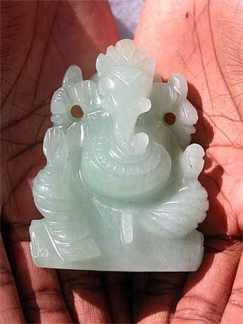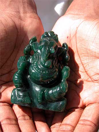 The large dark green Jade Ganesha and the light green Ganesha both came from Haridwar.