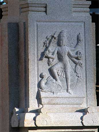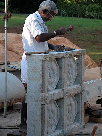 The afternoon sun cutting across the carving brings out the beauty of Iraivan.