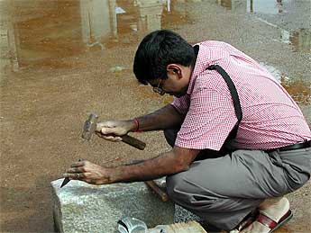 They enjoyed trying their hand at carving stone...