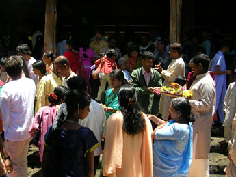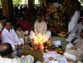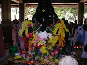 The Ganesha Homa is the main religious ceremony of the day. Members of Saiva Siddhanta Church are there early to set up everything for the fire ceremony which usually starts with bhajans to Lord Ganapati.
