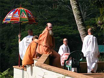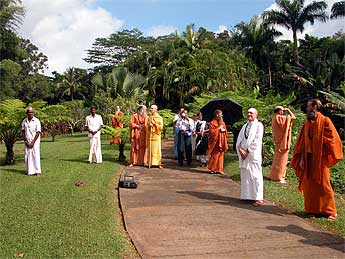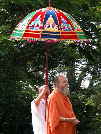 This Hindu couple from Chicago, Vinod and his wife had come this morning but didn't have a chance to meet Bodhinatha or any of the monks. He prayed to Siva that he would be able to "see the saints," and was delighted to be invited at noon to join us. At age 80, he's a deeply devoted soul and he and his wife have pilgrimaged to all the holy places in the Himalayas.