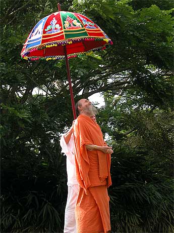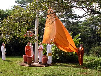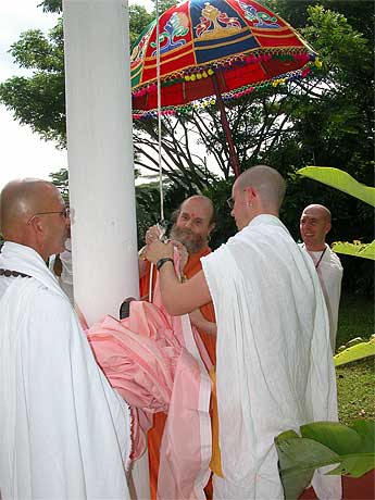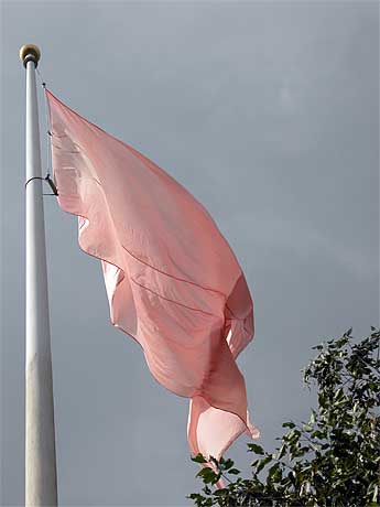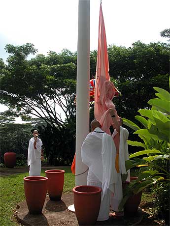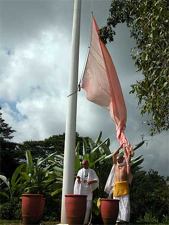 Down comes the "rust" colored flag of the Jivana Ritau.
