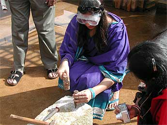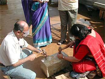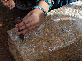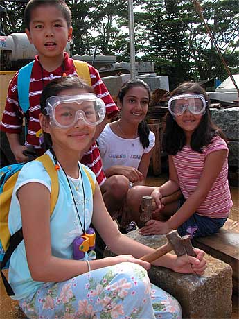 Chipping the stones of Iraivan is a big hit for everyone, especially these youngsters.