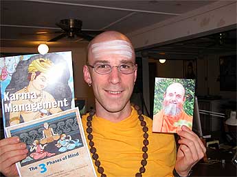 Subhash (center) is an avid student of Gurudeva's Master Course lessons. He's been studying them for a few years and was proud to say that he has all 365 email lessons. He personally likes Merging with Siva the most because it is the most profound. He also buys extra copies of Dancing with Siva to give to friends as gifts.