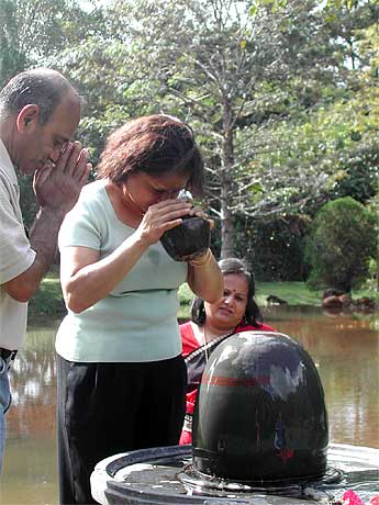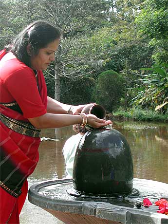 The Rajan family is part of a small community that received a Ganesha murthi from Gurudeva a few years ago as a first step toward building their own temple. Since then, the murthi has passed from family to family, being worshipped in their homes. Just recently the community finally purchased 50 acres of land and plans to build at least two temples on the land to accommodate the South Indian and Bengali communities.