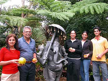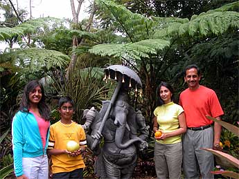 Ravi and wife, Sandhya, with children Priyanka and Aneesh were among our many Hindu guests today. It is citrus season at the Aadheenam and the our trees are full of fruits. Aneesh, for the first time in his life, had the experience of picking a grapefruit from a real tree... .