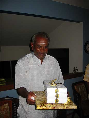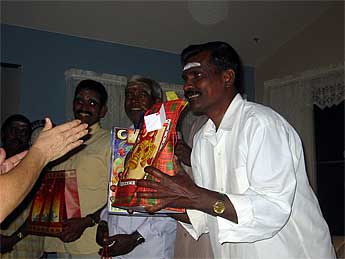 We collected gifts for them and honored them for the most wonderful job they are doing in building Iraivan with their whole heart and soul.