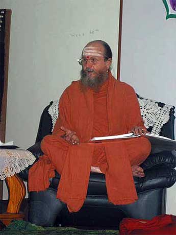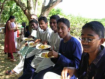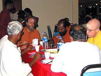 After the teaching sessions (see today's lead photo of Bodhinatha above) sishya take the opportunity to have dinner with our Satguru.
