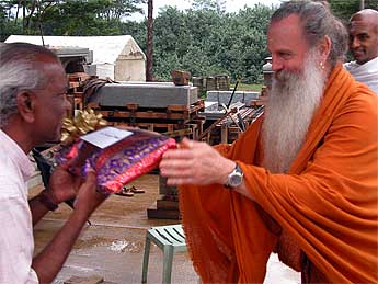 On the first day of the retreat it was both Pancha Ganapati and Iraivan day. Paramacharya Palaniswami presented the silpis with gifts....
