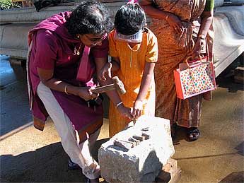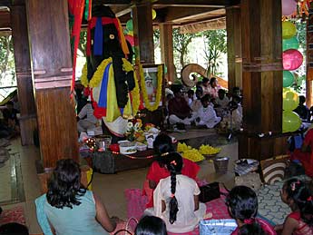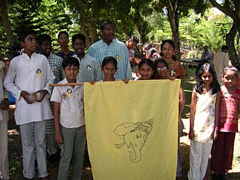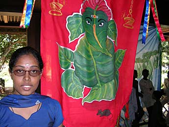 One young lady was so inspired by the festival that she painted a new banner for that day. Using leaf designs she painted a beautiful Ganesha on red satin.