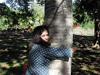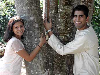 Here they are hugging a sacred rudraksha tree.