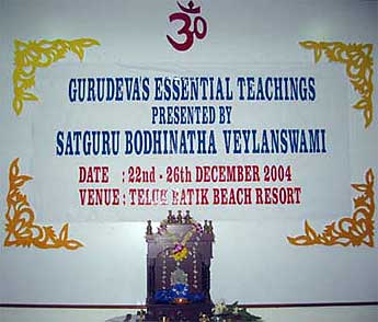 "The Malaysian Devotees organized A 5-day Himalayan Academy Study Retreat from the 22nd to 26th of December 2004. At the Teluk Batik Resort, Perak With Satguru Bodhinatha Veylanswami.
