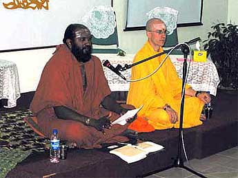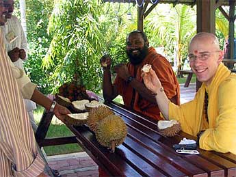 Caught in Action!! Yoginathaswami & Yogi Japendranatha enjoy the local fruits delight during the break. It was Yogi's first taste of the famous amazing durian fruit. The Malaysians were delighted that he was instantly "hooked" on it as is everyone else in the country.